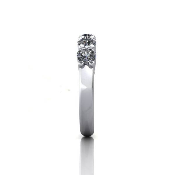 Anniversary Diamond Ring RA2 is a classic ring style that can be used for Engagement, Wedding or Anniversary celebrations. We set (6x) 3mm, 0.10ct Round Brilliant Natural Diamonds, GH colour, Si clarity, and Excellent cut for the best sparkle – total weight is 0.60 carats. The shared claw enables sparkle and wow factor while keeping the claws and prongs minimal. We can adjust the diamonds to suit your preferences. This diamond ring can also be set with blue sapphire, green emerald or red ruby to suit. Contact us to explore the options or ask any questions.