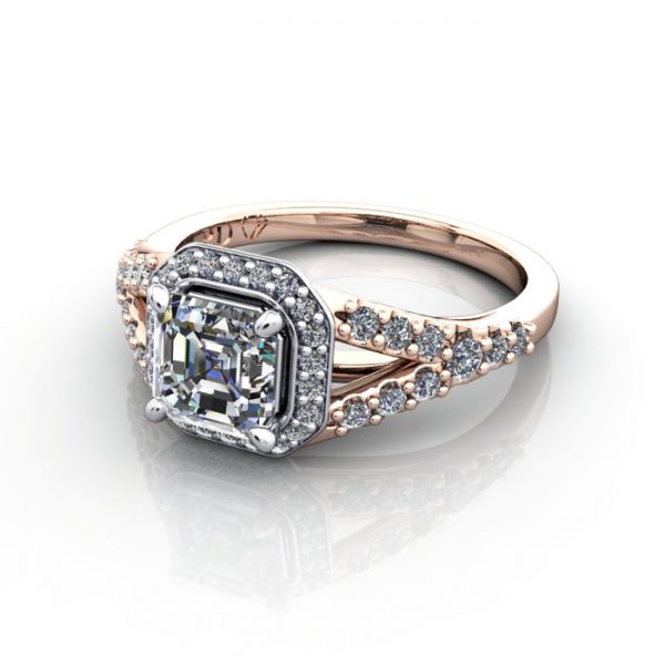 Our Asscher Cut Halo Diamond Ring RH3 in beautiful Rose Gold features a diamond split shank. This ring design looks fantastic with lots of sparkle and wow factor, and is available in many diamond shapes, gemstones and sizes to suit any budget. Complete the price by selecting a Natural or Lab-Grown Diamond. Contact our team for advice or visit a Polished Diamonds showroom for personal service.