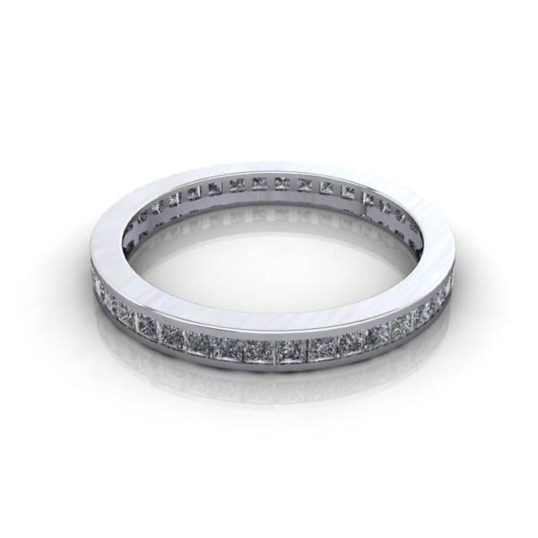 This stunning full Princess Cut Eternity Diamond Ring RE4 sparkles across the room. Select metal and finger size to suit. We use G colour and Si clarity natural diamonds for high performance sparkle. The price includes (40x) 1.5mm diamonds, channel set evenly around the band, totalling 0.80 carats. Contact us for more information, or visit our checkout page directly.