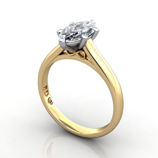 This Marquise Cut Solitaire Diamond Ring RS34 in classic Yellow Gold is a unique ring style that features an infinity symbol beneath the setting, symbolising an Eternity of Love. The RS34 is available with any diamond to suit your needs. Complete the pricing by selecting a suitable natural or lab-grown diamond. Match your budget, quality and carat weight to suit your needs. Having selected, proceed to checkout or contact us for service and friendly advice.