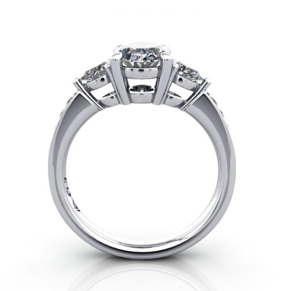Our Oval Cut Solitaire Accent Diamond Ring RSA5 in luxurious Platinum is a show-stopper design. We used the soft shape of the central Oval or Cushion and set (2x) Pear Cut Diamonds on the side with (8x) 1.4mm pave set Round Diamonds in the band for added sparkle. This ring design is available in many diamond shapes, gemstones and sizes to suit any budget. Select a Natural or Lab-Grown Diamond to complete the price and proceed to checkout. Contact us for personal service and friendly advice, or visit a Polished Diamond showroom.