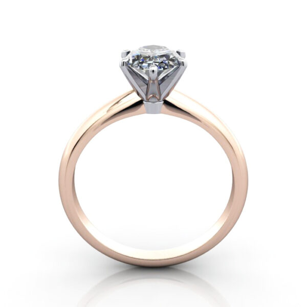 Our Oval Cut Solitaire Diamond Ring RS2 in beautiful Rose Gold with a Platinum setting is a modern classic six-claw design with straight claws to suspend the diamond for maximum sparkle. The default price is for the Solitaire Diamond Ring RS2. Complete the pricing by selecting a suitable Natural or Lab-Grown diamond. Match your budget, quality, and carat weight to suit your needs. Having selected, proceed to checkout or contact us for service and friendly advice.