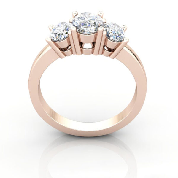 Our Oval Cut Trilogy Diamond Ring RT13 in beautiful Rose Gold is a stunning ring style with three Oval diamonds to sparkle across the room. We set (1x) 0.50ct Oval Diamond centre and (2x) 0.25ct Oval Diamonds on the side. The Natural Diamonds are H colour, Si clarity and Excellent cut for the best sparkle, the total weight is 1.00 carats. Select Lab-Grown Diamonds in F colour and VS clarity for an economical option. Contact us to explore the options or ask any questions.