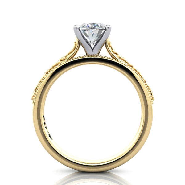 Our Oval Cut Vintage Diamond Ring RV2 in classic Yellow Gold with a Platinum setting is a stunning and detailed ring style with filigree on top of the band. Complete the pricing by selecting a suitable Natural or Lab-Grown diamond. Match your budget, quality and carat weight to suit your needs. Having selected, proceed to checkout or contact us for service and friendly advice.