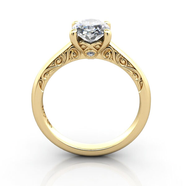 Our Oval Cut Vintage Diamond Ring Yellow Gold RV3 is perfect for engagement or a special anniversary. The engraving work on the side looks fabulous and creates a unique vintage-inspired talking point. Select a diamond to complete the price and match your budget. Visit your nearest Polished Diamonds Showroom or contact us for friendly advice and to explore the options.