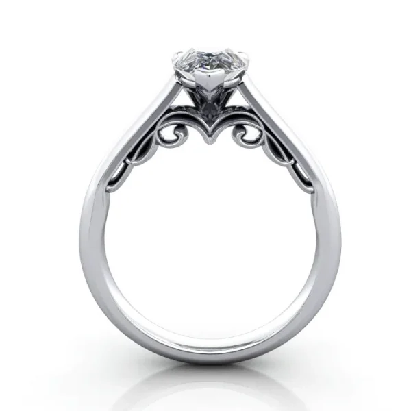 The Pear Cut Solitaire Diamond Ring RS35 in luxurious Platinum is one of our favourite ring styles. The filigree design work under the setting is stunning, enabling a brilliant sparkle. Complete the pricing by selecting a suitable natural or lab-grown diamond. Match your budget, quality and carat weight to suit your needs. Having selected, proceed to checkout or contact us for service and friendly advice.