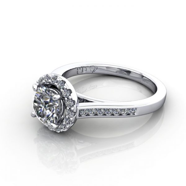Elevate your jewellery collection with a stunning Halo Diamond Ring RH4 in bright White Gold, custom-made to your exact specifications. Contact Polished Diamonds or visit one of our showrooms to begin your bespoke design journey.