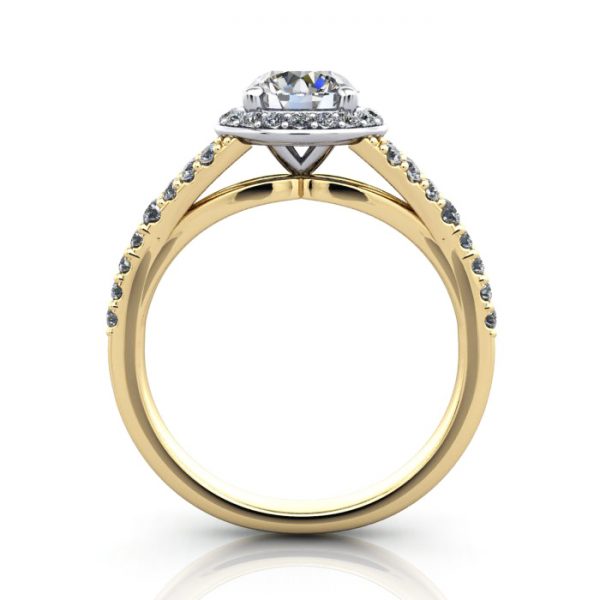 Our Round Brilliant Halo Diamond Ring RH3 in classic Yellow Gold with a Platinum setting features a diamond set split shank and is one of our favourite styles. The price includes the Gold or Platinum ring with at least 40 small diamonds in the halo and down the band, matched to the centre diamond quality you select. Complete the pricing by selecting a suitable central diamond, either a Natural Diamond or a Lab-Grown Diamond. Contact our friendly team for expert advice and explore the possibilities. We will model the ring with your selected choice for a preview to ensure it looks perfect and matches your budget.