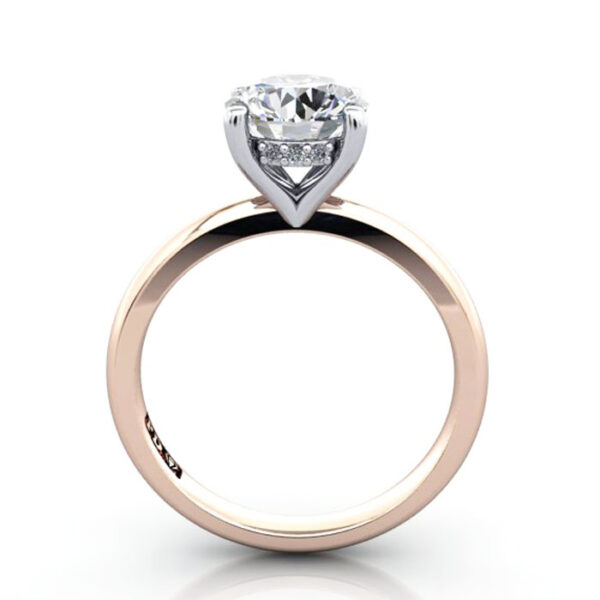 Round Brilliant Hidden Halo Solitaire Diamond Ring RS51 in beautiful Rose Gold with a Platinum setting is a unique and beautiful style. The RS51 combines timeless solitaire elegance with a subtle hidden halo design for extra sparkle, and is fully customisable in your choice of precious metal, perfect for enhancing your centre diamond’s brilliance. Complete the pricing by selecting a suitable Natural or Lab-Grown diamond. Match your budget, quality and carat weight to suit your needs. Having selected, you can go ahead and proceed to checkout or contact us for service and friendly advice.
