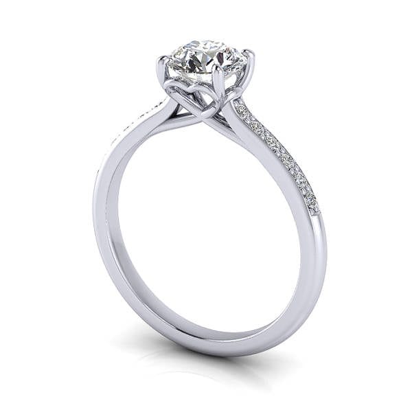 Our Round Brilliant Solitaire Accent Diamond Ring RSA1 in luxurious Platinum features a pavé row of (12x) 1.4mm diamonds down the band for extra sparkle. The price includes the Gold or Platinum ring and the small pavé diamonds to match the quality of the central diamond you select. Complete the pricing by selecting a suitable Natural or Lab-Grown Diamond. Having selected, you can go ahead and proceed to checkout or contact us for service and friendly advice.