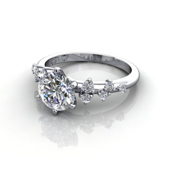 The Round Brilliant Solitaire Accent Diamond Ring RSA11 in luxurious Platinum is an exquisite 6-claw ring with droplet like side diamonds featuring (10x) round diamonds at 0.15 carats, claw set in the band to match the central diamond you select. This ring design is available in many diamond shapes, gemstones and sizes to suit any budget. Complete the price by selecting a suitable central diamond. Contact our team for advice or visit a Polished Diamonds showroom for personal service.