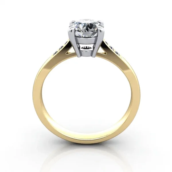Our Round Brilliant Solitaire Accent Diamond Ring RSA17 in classic Yellow Gold with a Platinum setting includes (6x) round side diamonds. We invite you to complete the pricing by selecting metal and a diamond to suit your budget and complete the piece. Select a suitable Natural or Lab-Grown Diamond. Match your budget, quality and carat weight to suit your needs. Having selected, proceed to checkout or contact us for service and friendly advice.