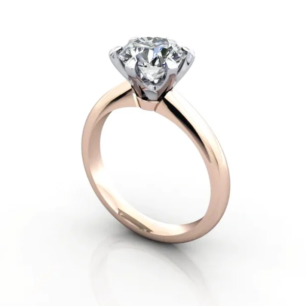 The Round Brilliant Solitaire Diamond Ring RS18 in beautiful Rose Gold is a traditional and unique style that is guaranteed to sparkle. This ring is set with six claws and is strongly Tiffany-inspired. It’s a simple band that draws the eye directly to the elevated diamond, creating a timeless and elegant look that is synonymous with one of the world’s most iconic engagement ring styles. Complete the pricing by selecting a suitable natural or lab-grown diamond. Match your budget, quality and carat weight to suit your needs. Having selected, proceed to checkout or contact us for service and friendly advice.