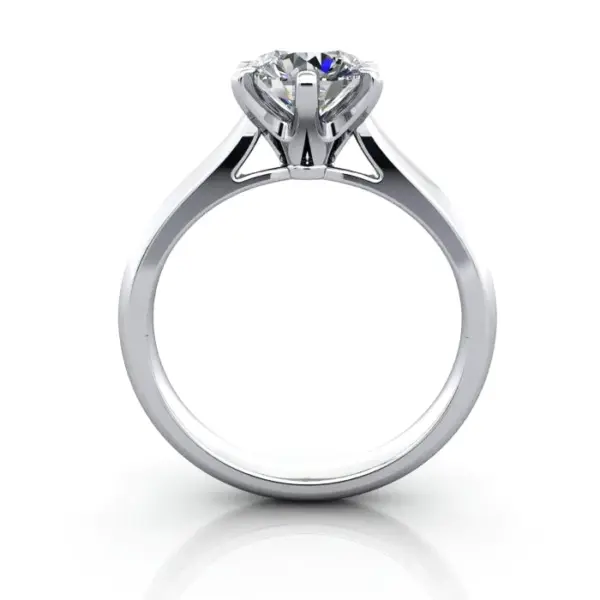 Perhaps the best-looking ring, our Round Brilliant Solitaire Diamond Ring RS21 in bright White Gold is perfect. The classic claws suspend the diamond, and the windows in the band give a delicate, timeless look. It is available in any carat weight and quality to suit your needs. Select a Natural or Lab-Grown Diamond to complete the price, or contact us for personal service and to explore the options.