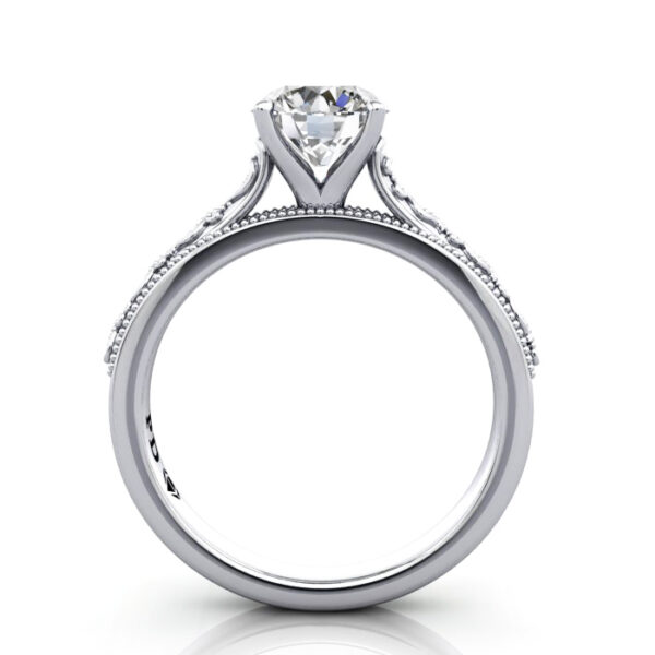 Our Round Brilliant Cut Vintage Diamond Ring RV2 in luxurious Platinum is a stunning and detailed ring style with filigree on top of the band. Complete the pricing by selecting a suitable Natural or Lab-Grown diamond. Match your budget, quality and carat weight to suit your needs. Having selected, proceed to checkout or contact us for service and friendly advice.