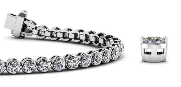 This Diamond Bracelet uses Round brilliant-cut diamonds, 4.73 carats (43 x 3mm), set in luxurious 14kt white gold. The price can be adjusted to suit your budget; select the diamond carat weight and precious metal to complete the price. We use natural diamonds with a Very Good to Excellent cut, H colour, and I1 clarity and lab-grown diamonds with F colour and VS clarity for a bright, high-performing sparkle that will light up the room. Other diamond-carat options include: